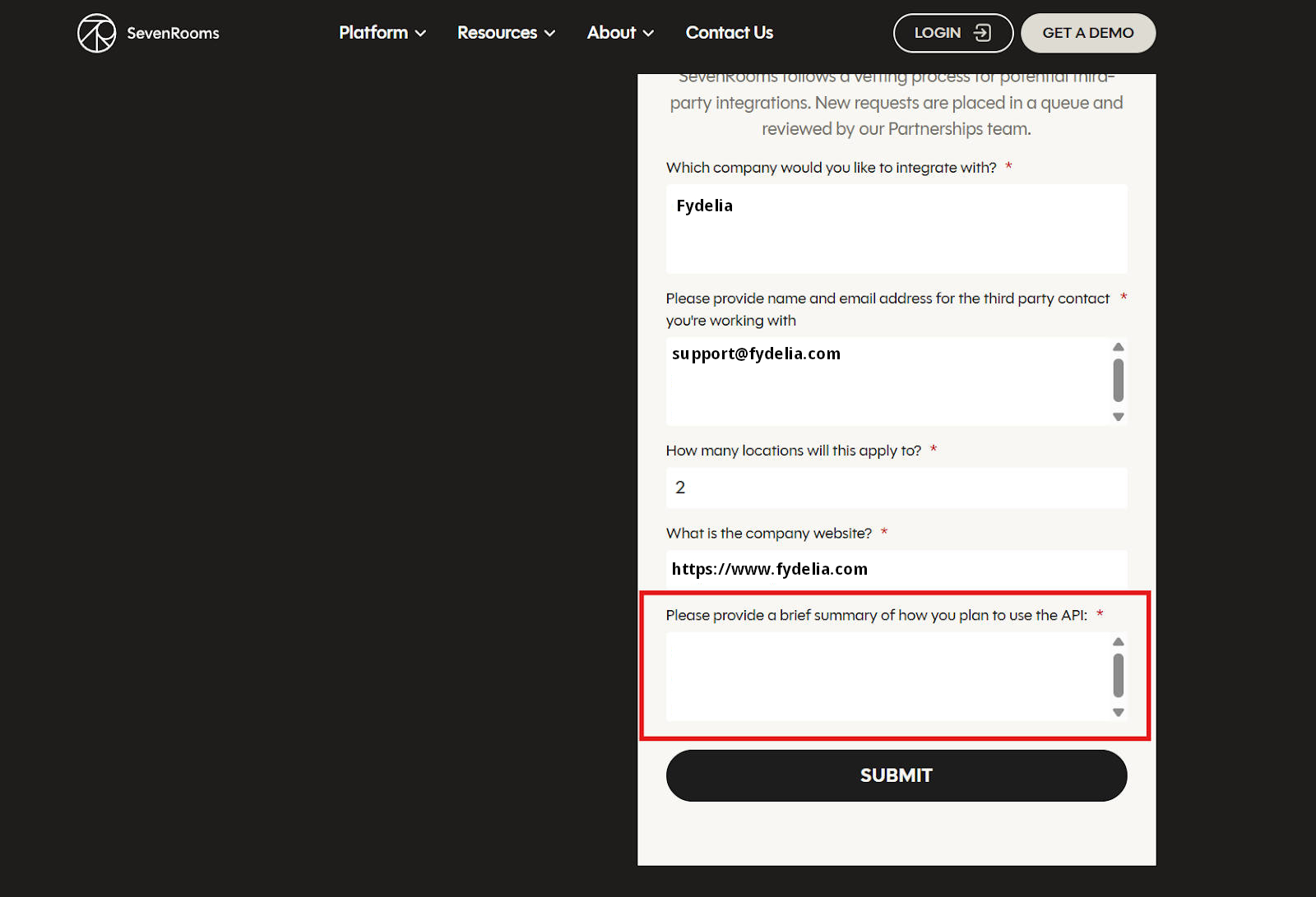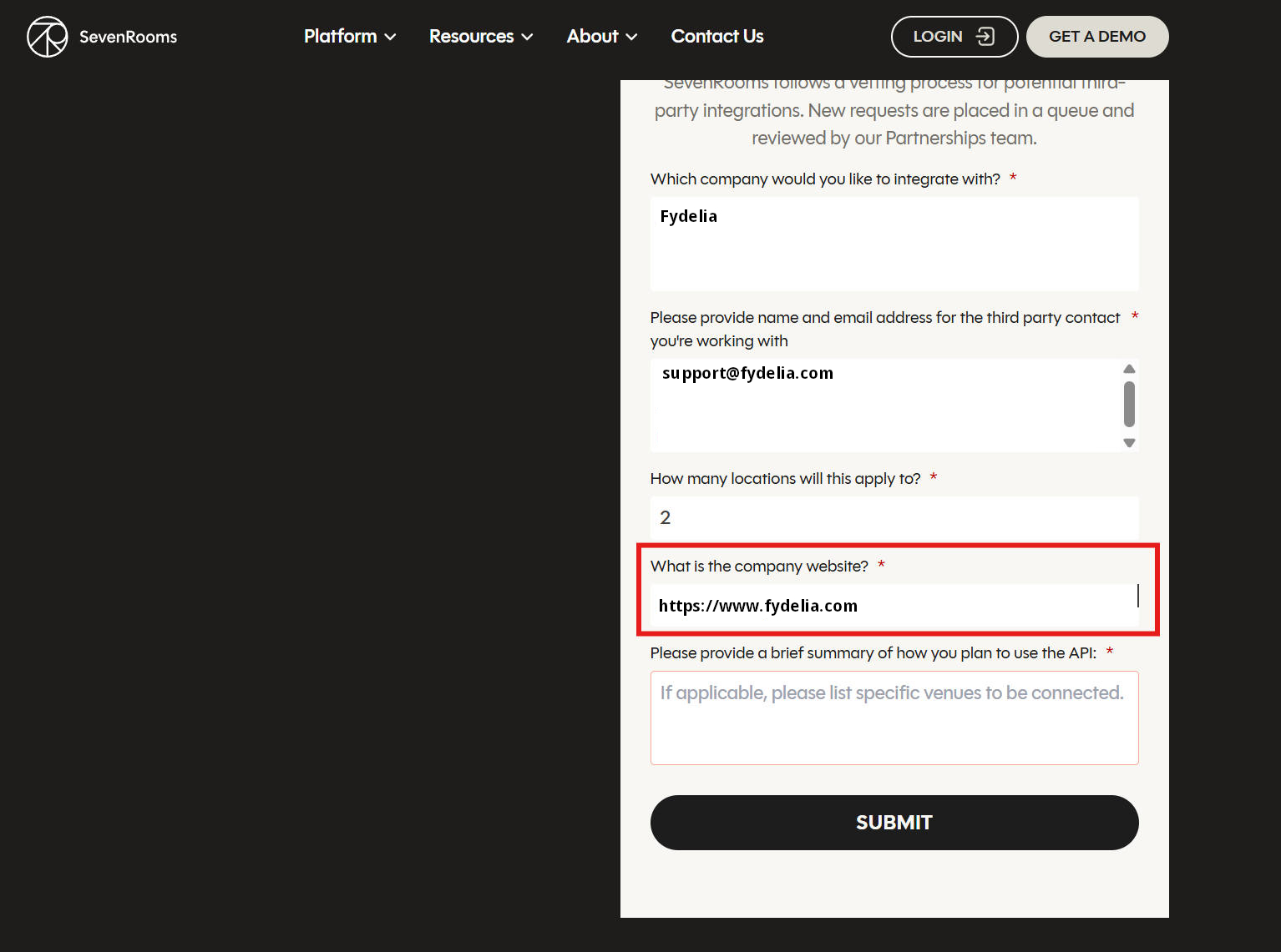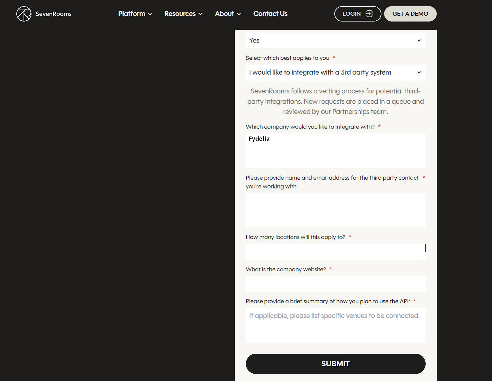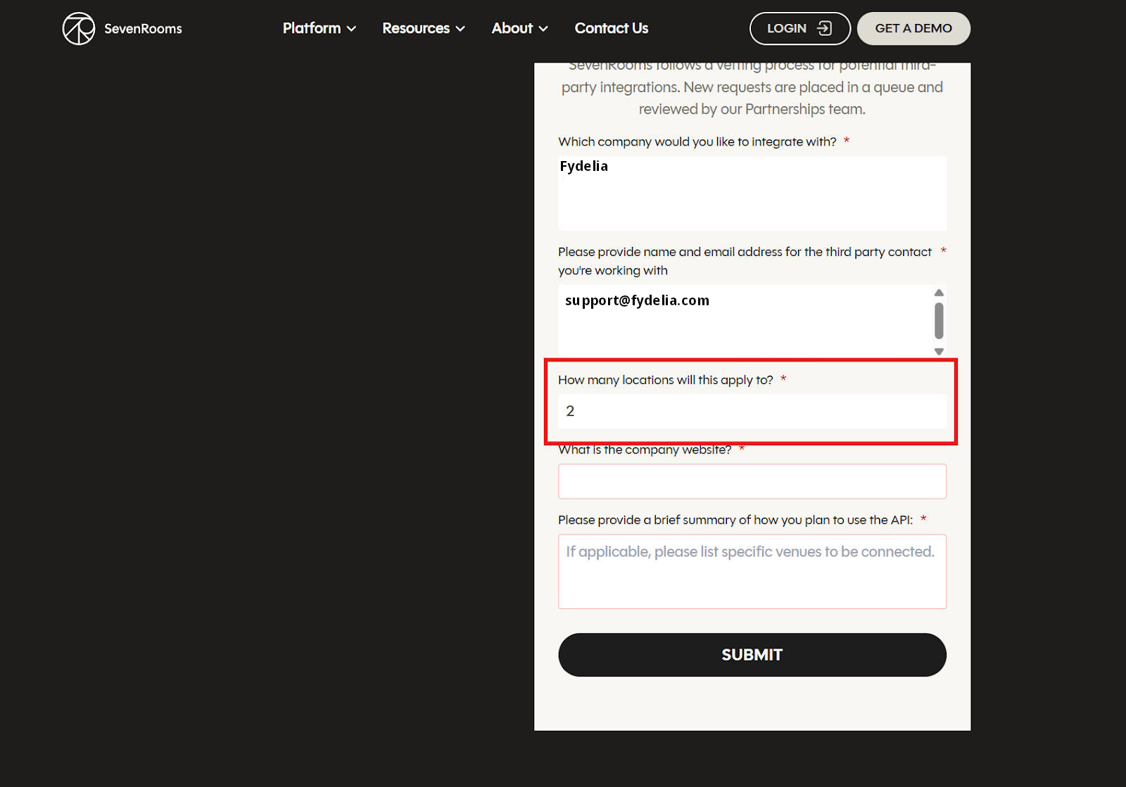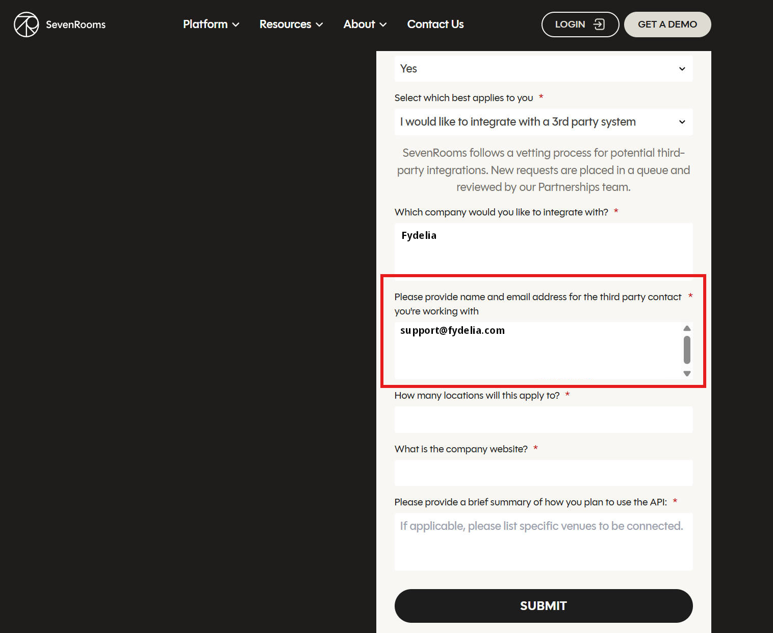 Fill out the Sevenrooms Integration Form to get the API credentials needed for setting up the integration