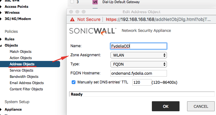 1. Set the address object to ondemand.fydelia.com