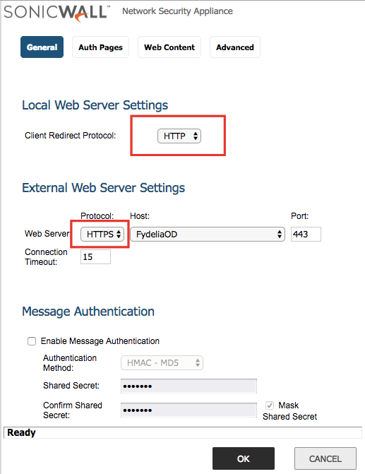 With SonicWall, guests are sent to the Fydelia server and the redirect includes all SonicWall parameters required by Fydelia. In fact, for this reason, there is no configuration required at all on the Fydelia splash page side.