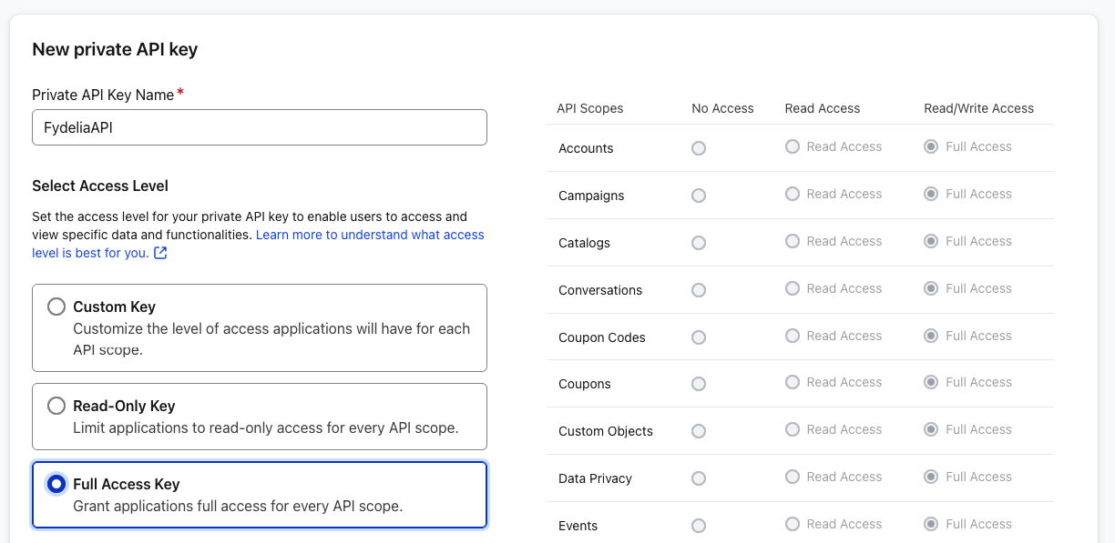 Give your key a name such as “Fydelia API Key”